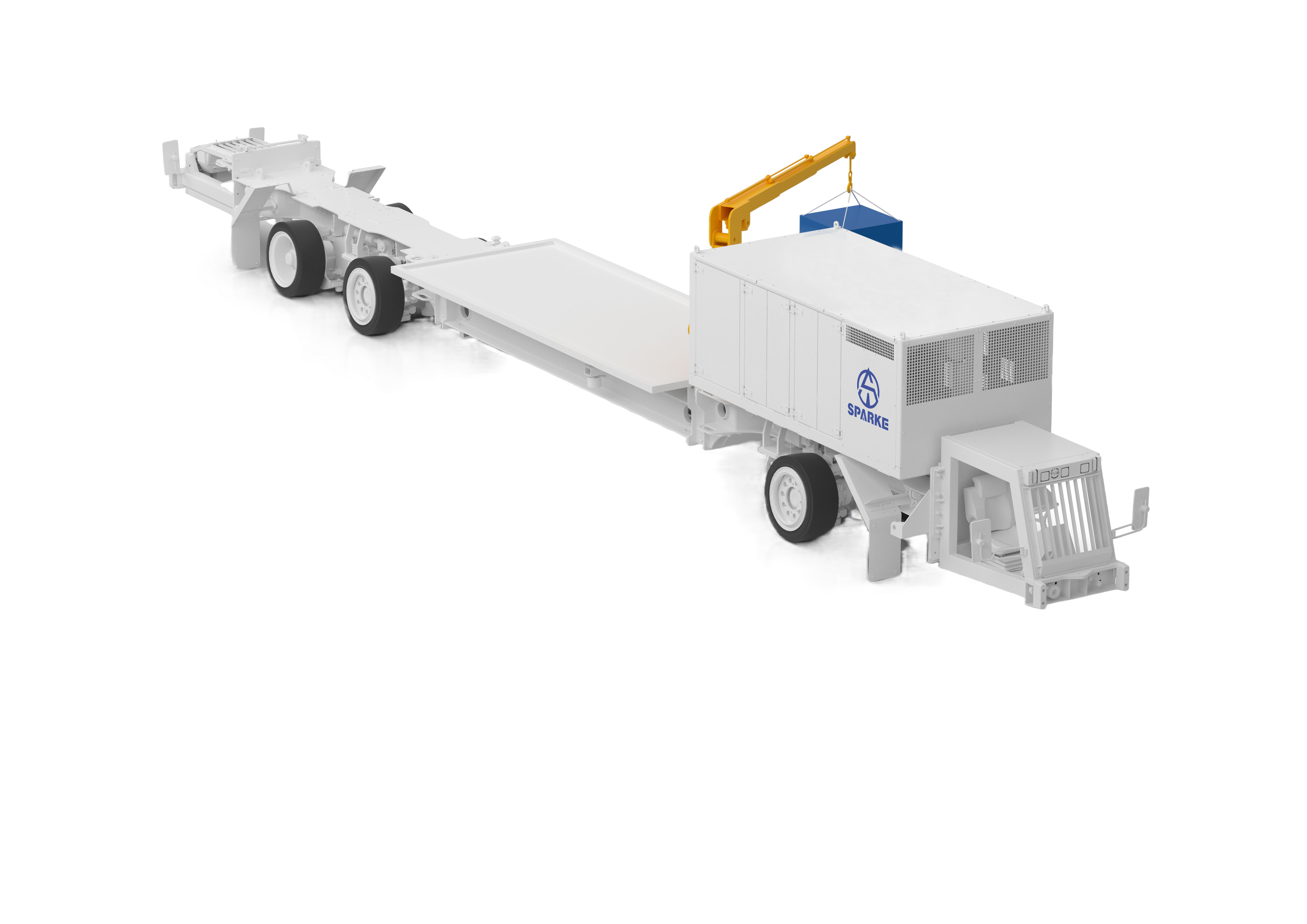 We desiged crane service vehicle for tunnel construction. It can transport materials inside of tunnel and bring tools, diesel tank and components to tunnel for the maintenance work of the other vehiles.